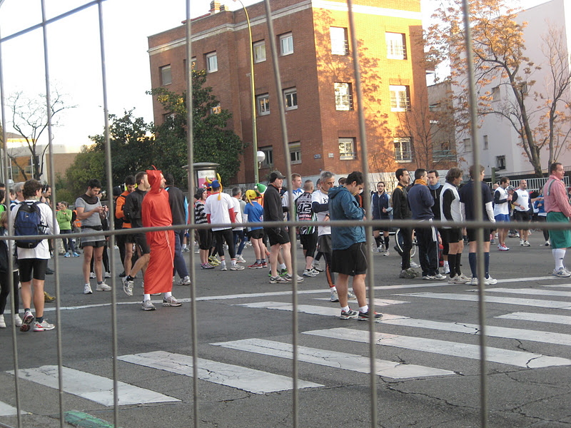 We finally read the back of some of the shirts and saw that this was San Silvestre Vallecana, a famous 10K. Famous was right there was thousands of people there. The race seemed to be starting down the hill by the stadium, this was at the top of the hill, where for some reason runners were milling around waiting to start too. I wish I would have had the courage to capture more of the costumes, they were a spectacle!